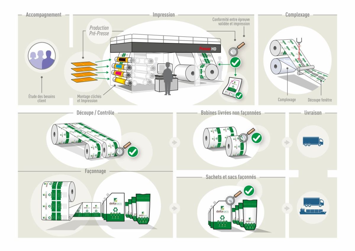 Le savoir-faire Deltasacs, c’est l’exigence d’une production maîtrisée, alliée à un engagement fort pour l’innovation durable. C’est aussi la garantie d’un partenaire fiable